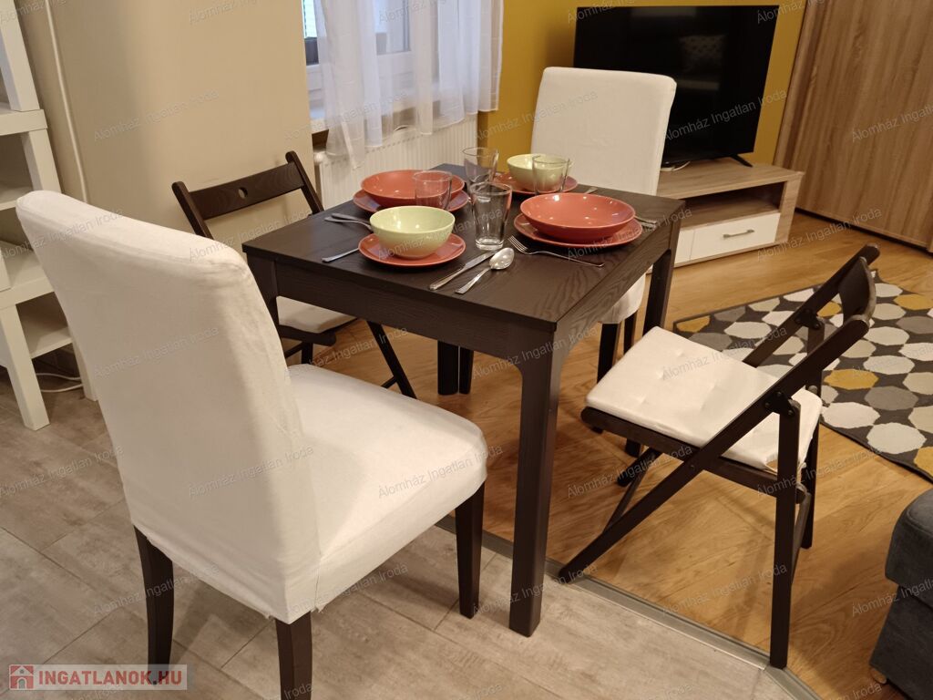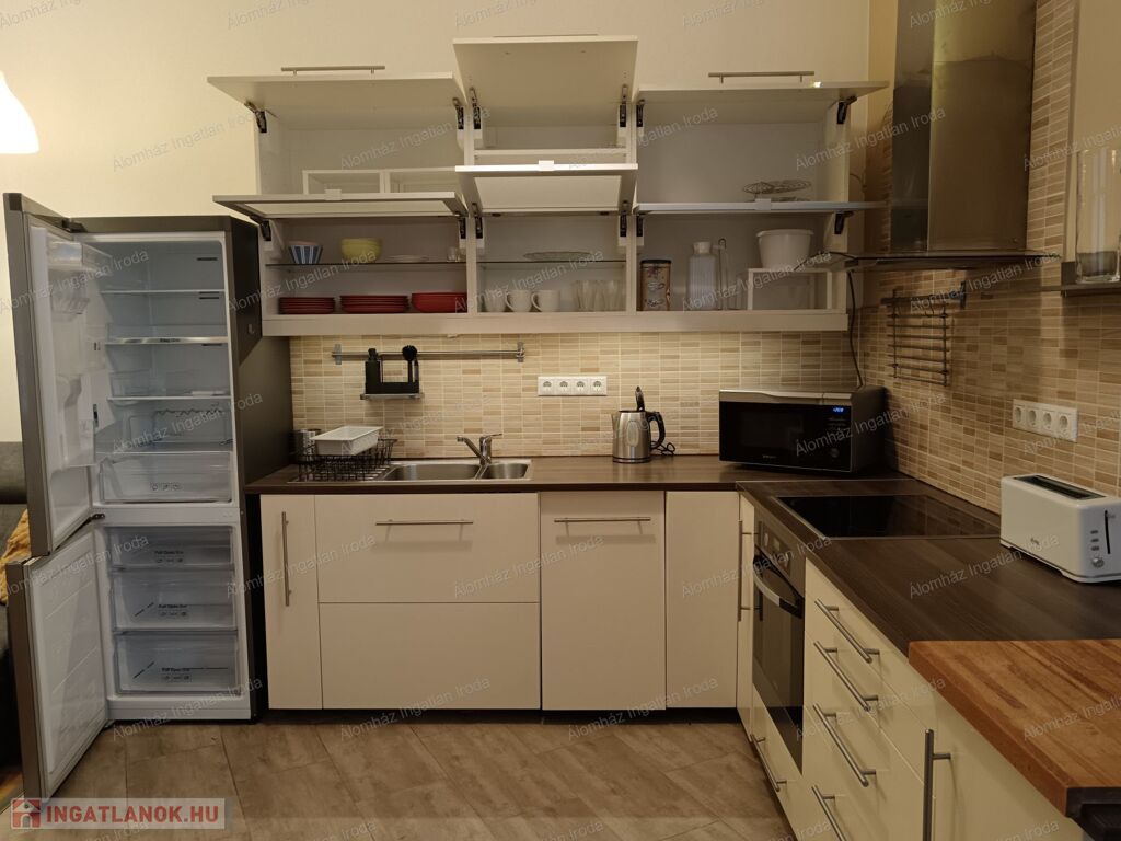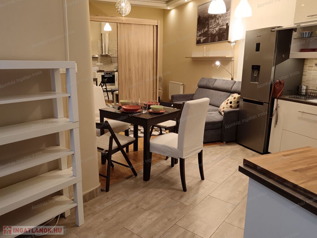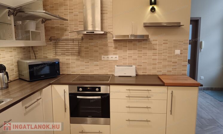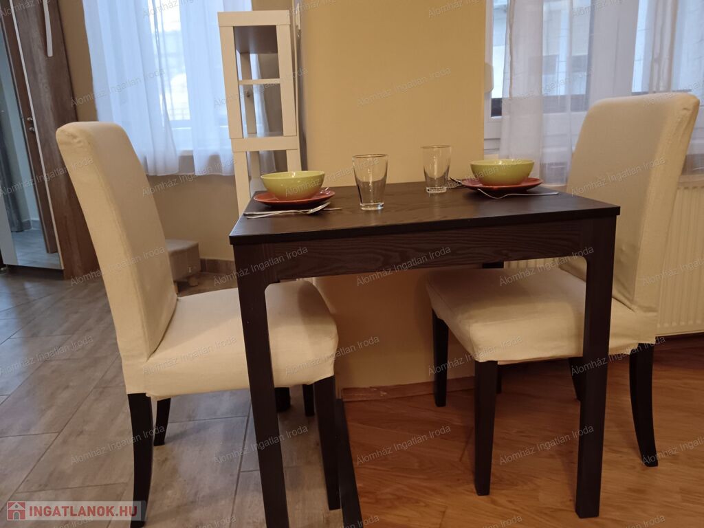 Kiadó lakás egy liftes ház 4. emeletén, csendes, belső udvarra néző, teljesen felújított, 49 m2-es lakás. A lakás teljesen gépesített, bútorozott, felszerelt. Helyiségek: nappali-konyha, külön nyíló hálószoba, hálófülke, tárolókamra, fürdőszoba, külön WC. Biztonsági ajtó, klíma, redőnyös ablakok, saját víz-, gáz-, villanyóra biztosítja a kényelmet. A lakásba háziállat nem hozható, dohányzás nem megengedett.